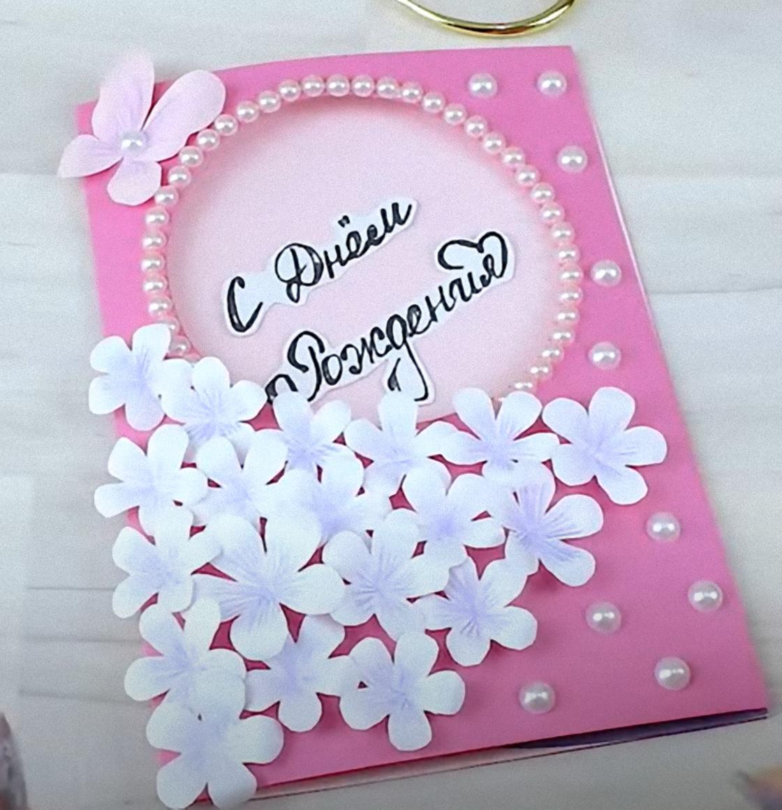 - Надпись: Напишите на лицевой стороне короткую фразу, например, «С Днем рождения, мамочка!». Можно использовать готовые вырубки (декоративные надписи) или написать от руки красивым почерком.