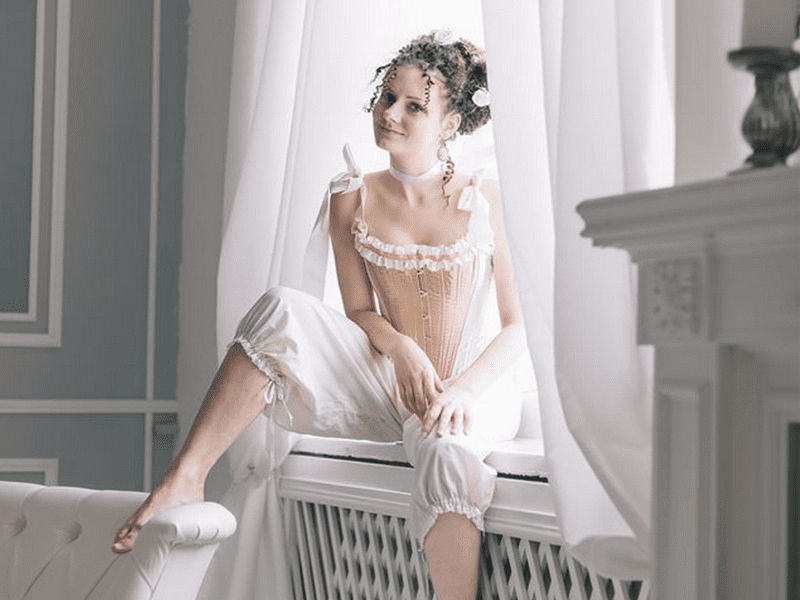 Может показаться, что худшим элементом одежды прошлых веков был именно корсет, часто одевание жесткого корсета освещают как долгий и неприятный процесс в результате которого девушки едва двигаются и дышат. Но не у Милы. Корсет девушка одевает почти каждый день. Он сшит из качественного материала и в соответствии с фигурой, поэтому никакого неудобства не вызывает.